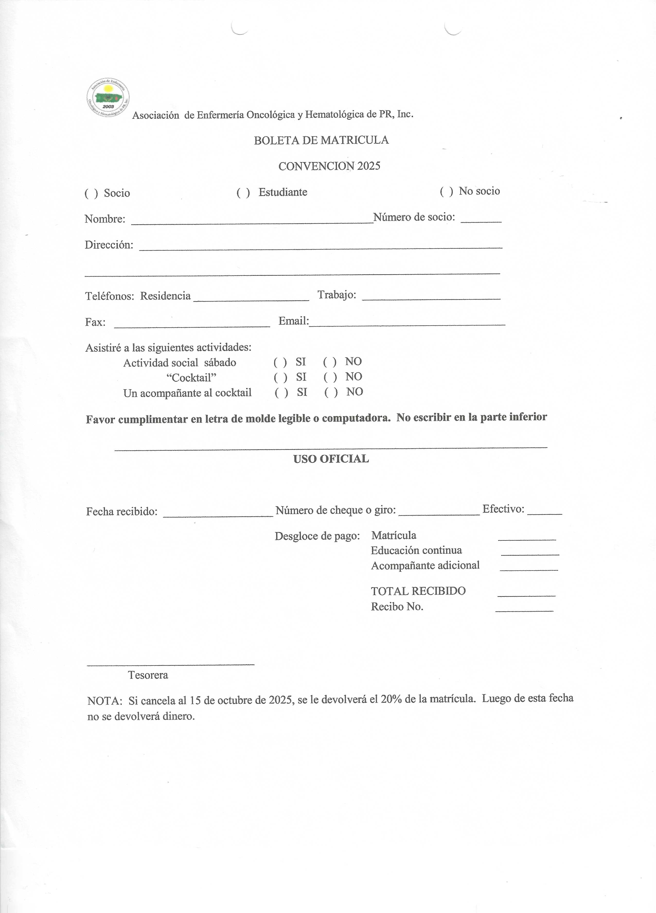 Quisiera ver la posibilidad que se le comparta a los miembros de la asociación y se incluya en las redes sociales. El cuestionario puede ser contestado por cualquier profesional de la salud que provea servicios a los pacientes con diagnostico de cáncer incluyendo enfermería, médicos, farmacéutico/a, nutricionista, trabajador social, terapista físico/ocupacional, psicólogo/a, profesor/academia u otro.
