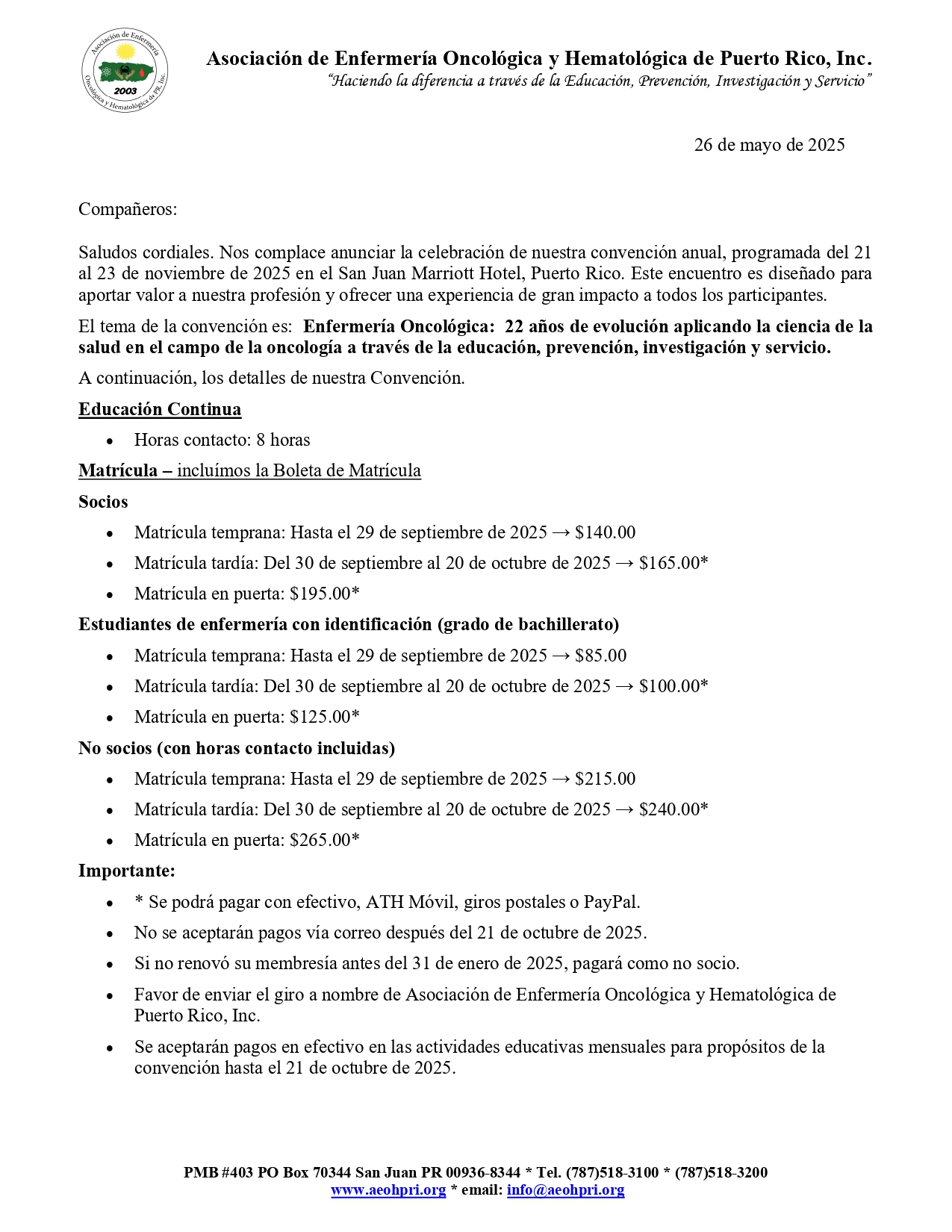 A través de la educación capacitamos los profesionales de enfermería oncológica y hematológica. Somos reconocidos como parte importante en el cuidado, educación y rehabilitación de los sobrevivientes de condiciones oncológicas y hematológicas.