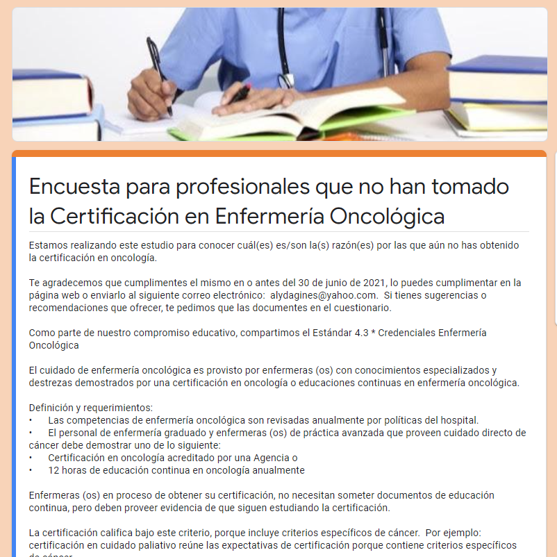 Encuesta para profesionales que no han tomado la Certificación en Enfermería Oncológica