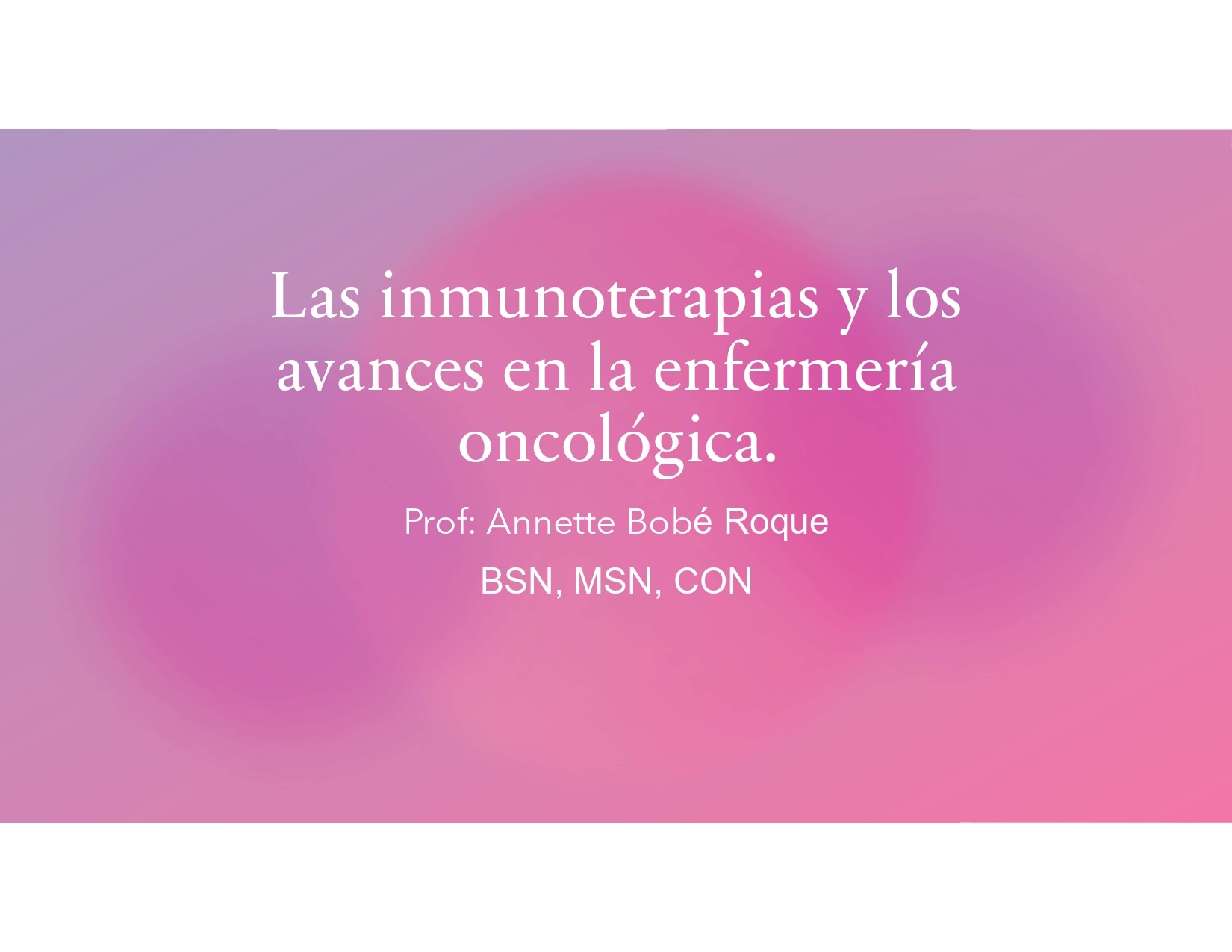 Conferenciante: Annette Bobe, RN, MSN, CON