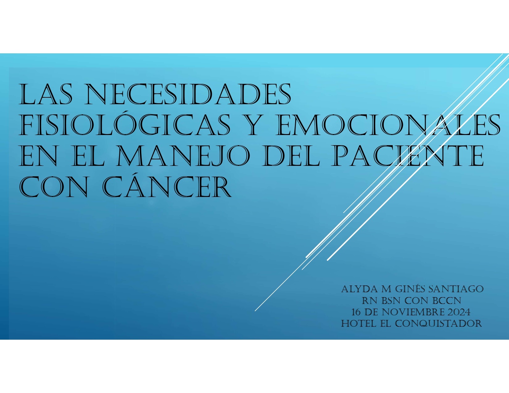 Conferenciante: Alyda M Ginés Santiago, RN, BSN, CON, BCCN