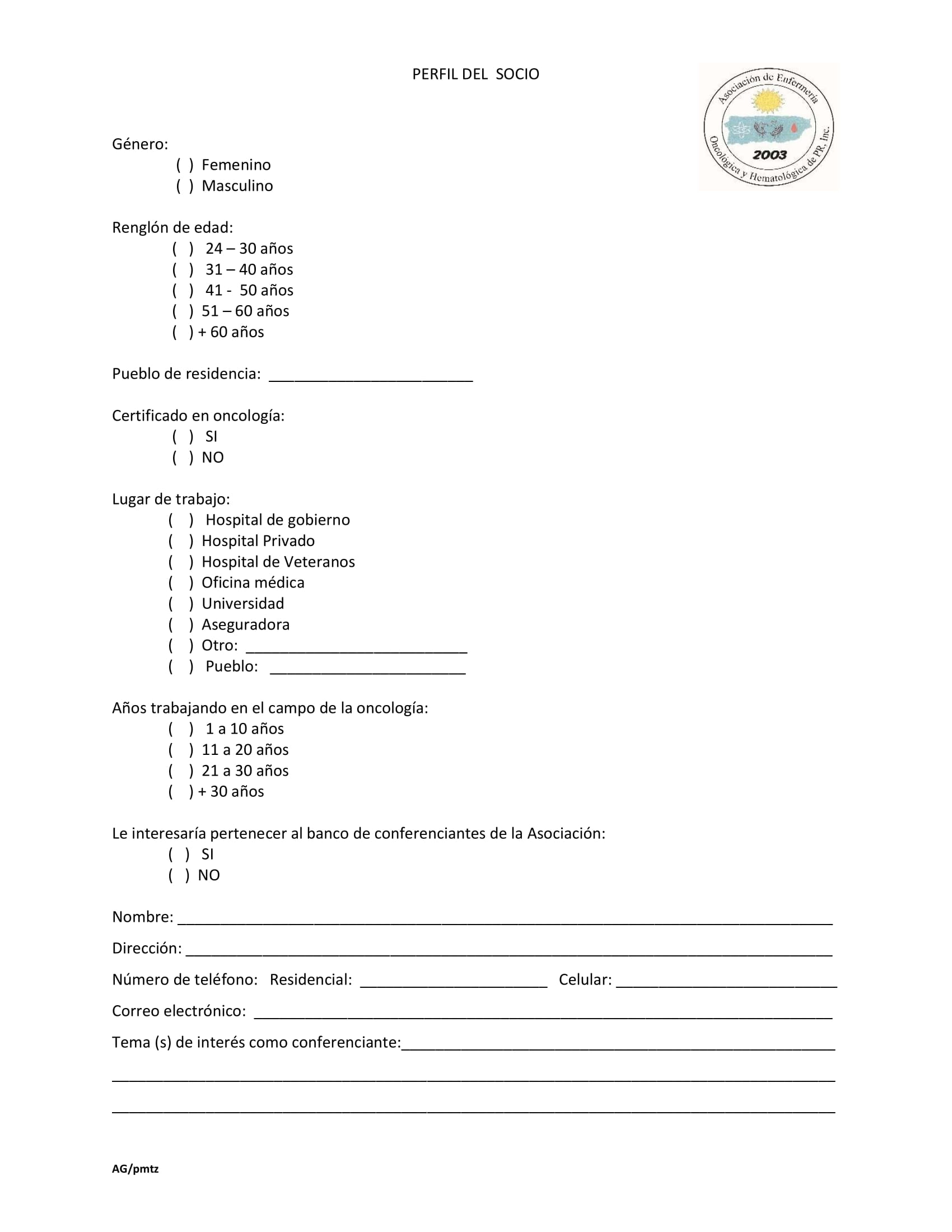 El cuestionario que acompaña esta comunicación, debe de ser cumplimentado en letra de molde legible o en computadora. Lo pueden hacer llegar en correo regular o correo electrónico a la siguiente dirección: Esta dirección de correo electrónico está siendo protegida contra los robots de spam. Necesita tener JavaScript habilitado para poder verlo. o acceder y descargar de nuestra página web: www.aeohpri.org